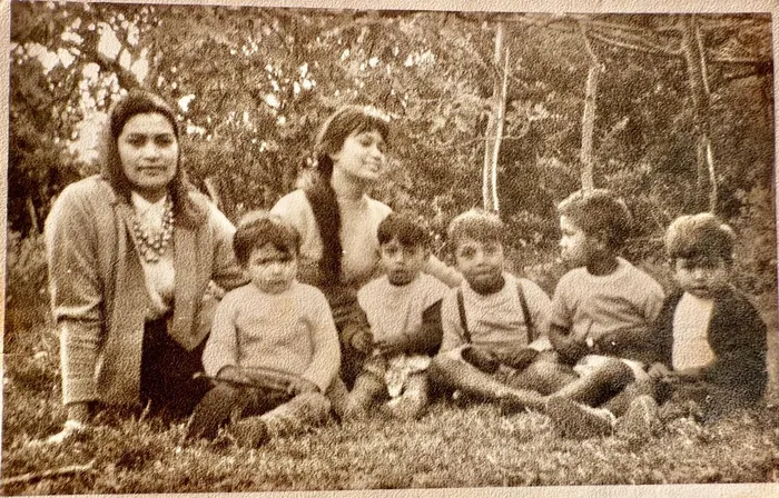 Young Solomon cousins, from left Ismail, Benyamin, Nuh, Hoosain and Abdurahman, on the farm with their aunty's Zaynub and Hajr.