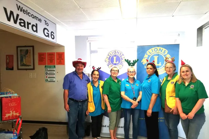 Lions and volunteers at Tygerberg Hospital’s Children’s Ward G6. From left: Herman Laubscher, Christiane Savoia, Paula Lang, Colleen De Villiers, Kauthar Behardien-Van Reenen, Gail Darling, and Claire Stockenstrom.