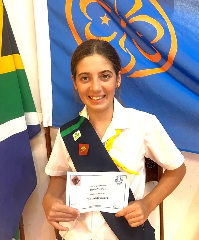 Cape Peninsula Rangers Girl Guide, Katie Fletcher, with her chief's award, which allowed her to move up to the Rangers.